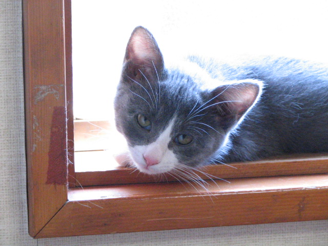 窓枠に並んで寝ているのは、なんともかわいらしい風景でした。
