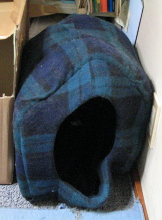 いや、この青緑チェックのかまくら型ハウスをですねえ、(主に)マルが、上から押しつぶしてしまうのですよ。(^^;;