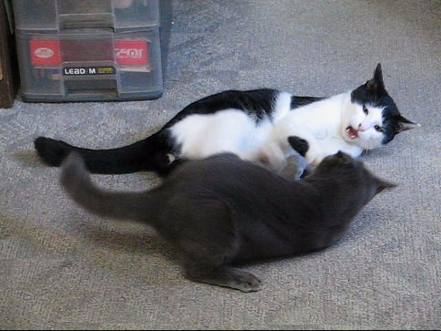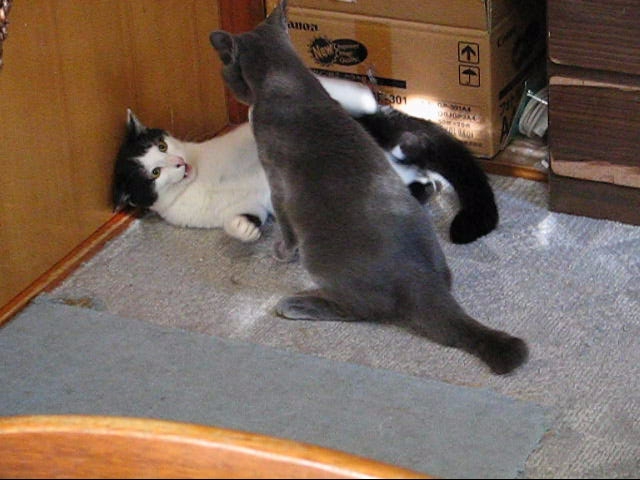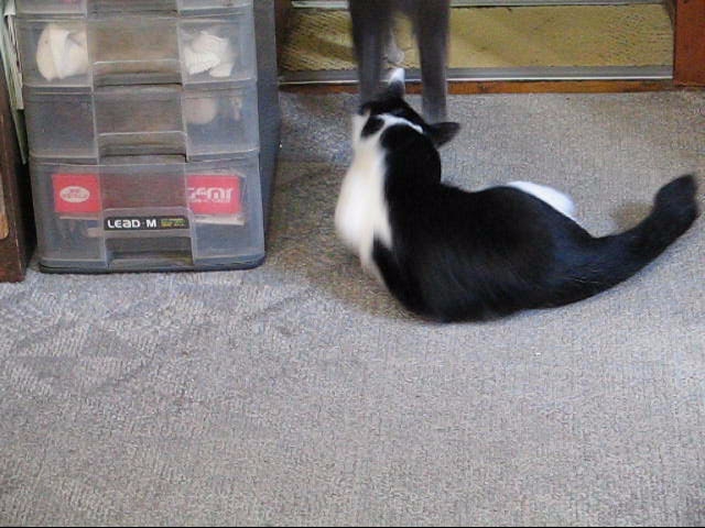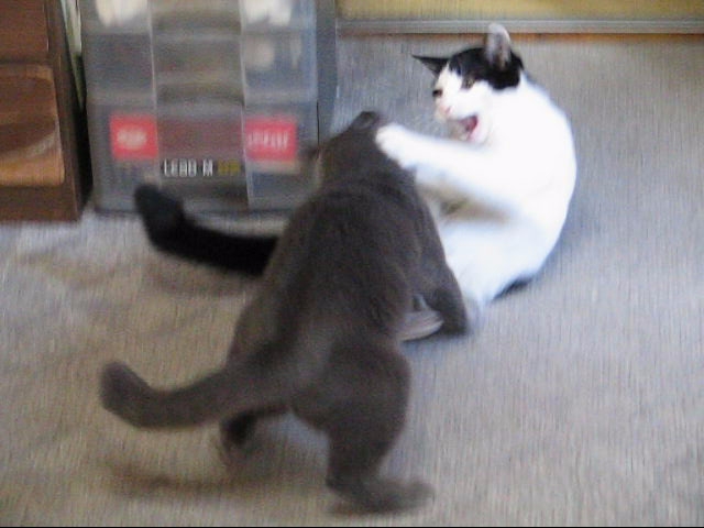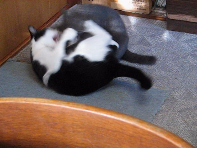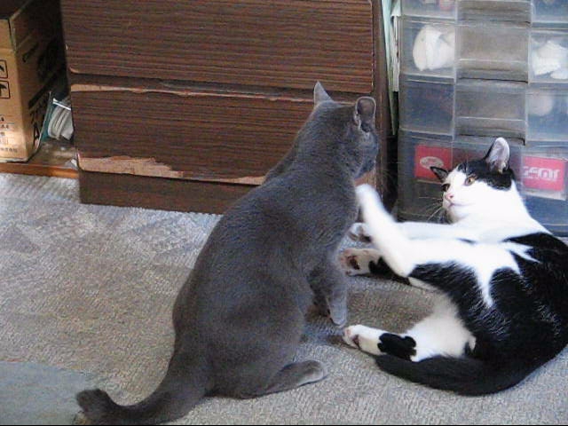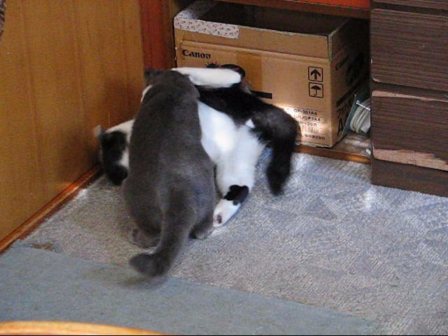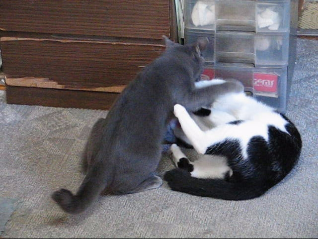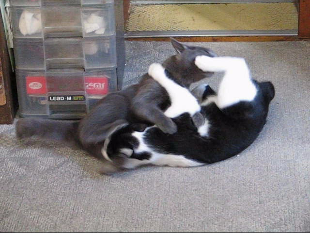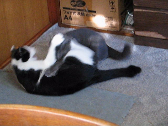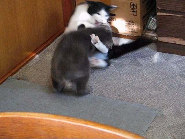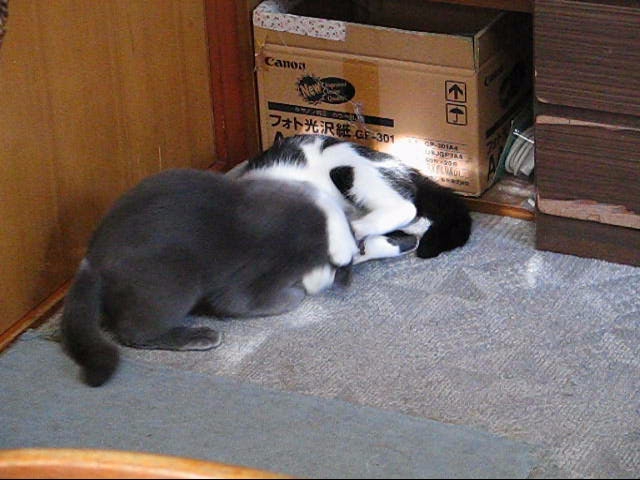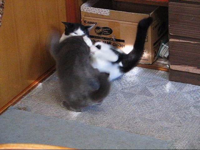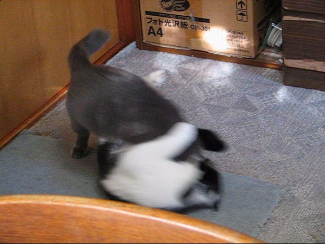 マルとぎんの「取っ組み合い」(プロレスごっこ?)の様子です。1分10秒。「ドタンバタン」と音が出ます。