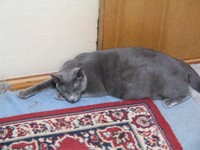 トイレの後、自分で舐めてきれいにするのが大変らしく・・・ カーペットでふきふき