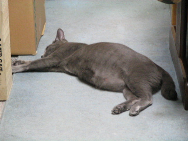 お腹が邪魔で「丸くなる」のが大変なのか、床に長く寝そべっていることが多くなりました。