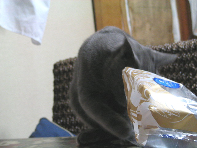 でも、よほど黒猫ダブルが怖かったのか、餌をもらうにも慎重に慎重を重ねてる感じです。