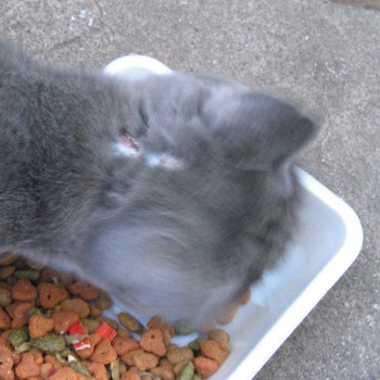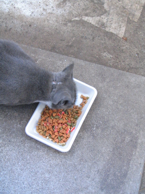 グレが来て、勝手口の扉をカリカリとひっかいた時だけ、餌を出してます。