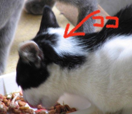 耳の後ろが傷だらけ。