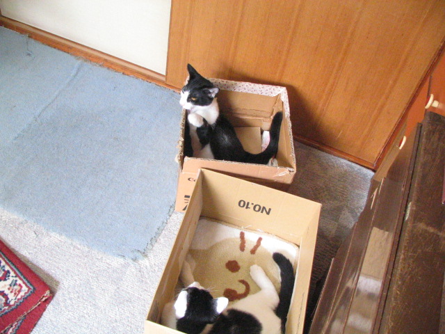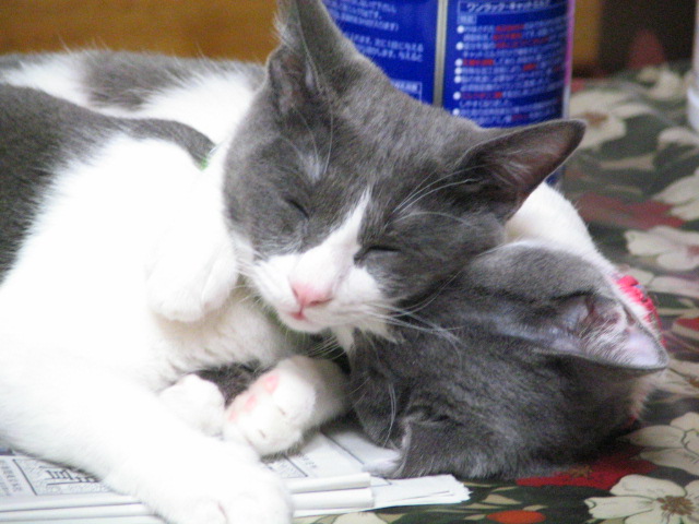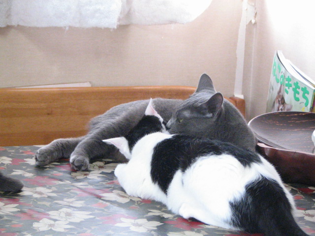 珍しく「仲良く」していたチビマル&チビグレ。この2匹のツーショットって、ちょっと珍しいんですよねー