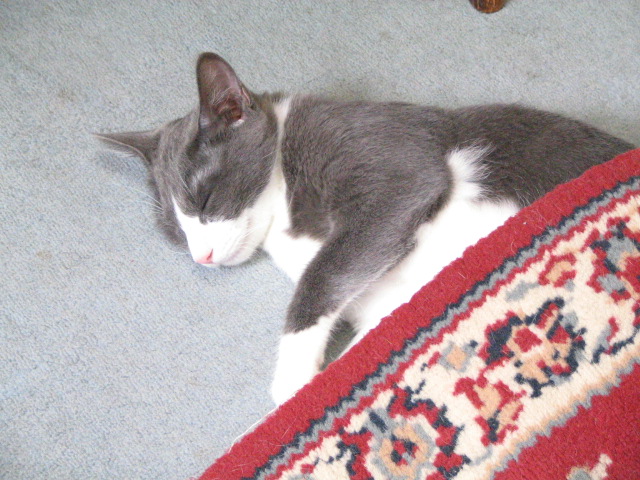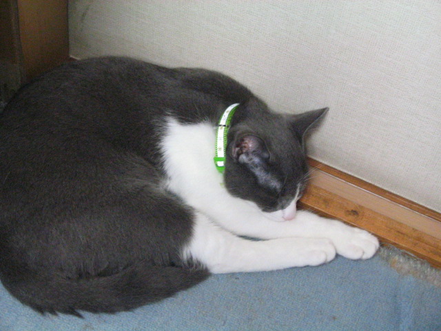 元は玄関マットだったミニカーペットをお腹にかけて、チビグレが寝ていたので思わずパチリ。
