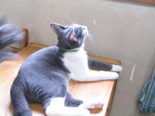 (飼い主のわたしはバテバテ〜 で、祖母猫のグレは(年齢はまだ若いと思うんだけど)夏が苦手みたいで食欲激減です)