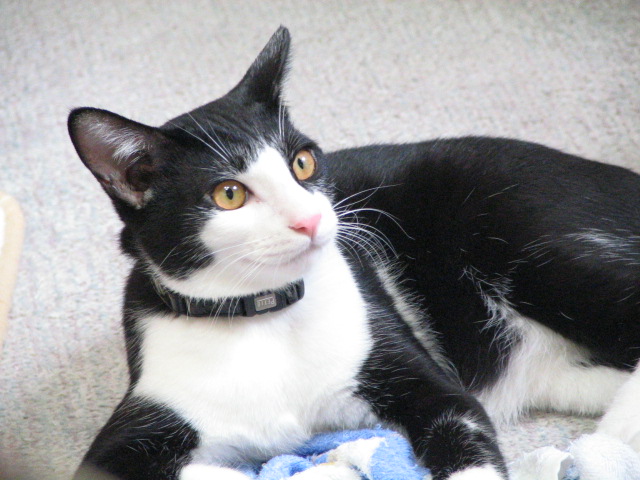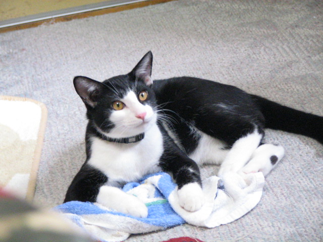 万が一、外に逃げ出しちゃっても首輪がついていれば飼い猫とわかるし、首輪にならしておくことで非常時(災害とか)に首輪+リード(引き紐)を付けたりも出来たらいいなぁ・・・ と。まあ、そんなことを考えてます。