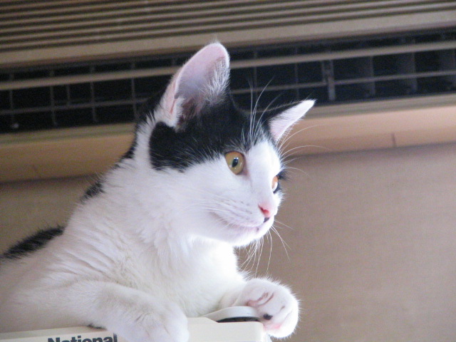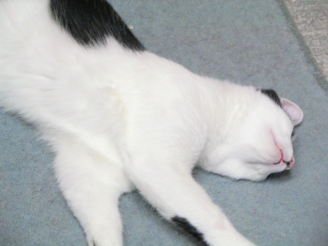 シロミミはこんなにして首筋を見せては「ねえ、なでてぇ?」とおねだりします。(^^;; この子も甘ったれ度が上がってるような・・・