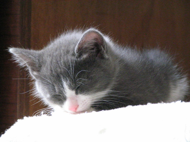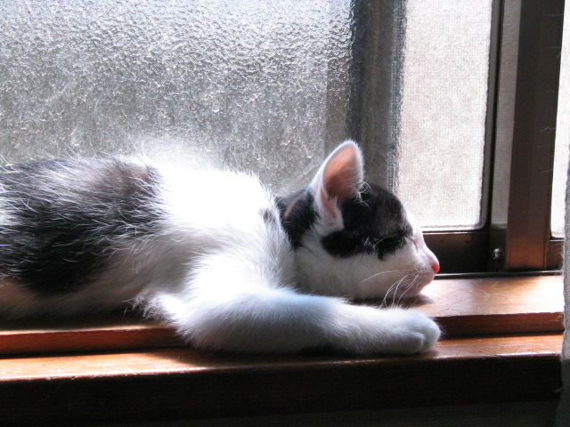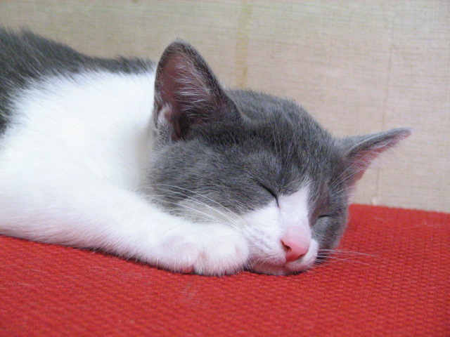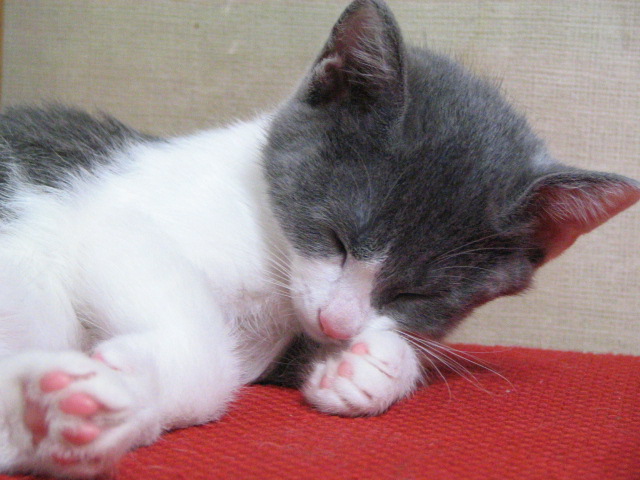 いっぱい食べて、部屋中を走り回り、疲れるとコロンと寝てしまう・・・ これが「仔猫」ってものなんですねえ。