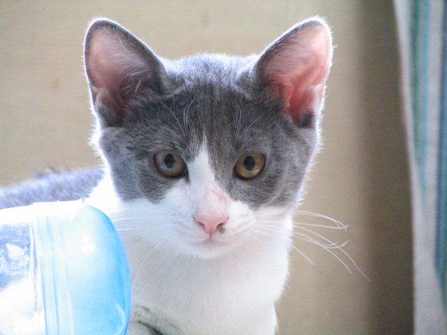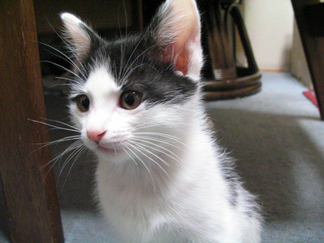 「だっこ」は好きだけど、いじられるのは嫌い。ケージに入れられるのは大嫌い。わがままで気分屋なお嬢様で、まあなんというか、「いかにも猫!」という性格に育ってきました。(^^;; 食事はまだまだベビー用ドライフードより、「おっぱい」の方がお好きのようです。(苦笑)