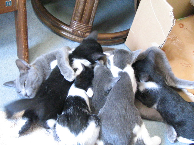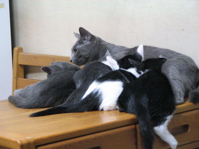 母猫ぎんに群がる子どもたち・・・(^^;;