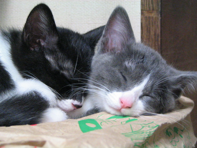 仔猫たちは元気いっぱいで狭いダイニング&キッチンを走り回っているので、本当言うと「寝ててくれると助かる〜」のですが。