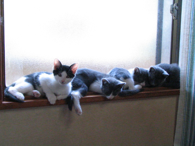 窓枠に並んで寝ているのは、なんともかわいらしい風景でした。