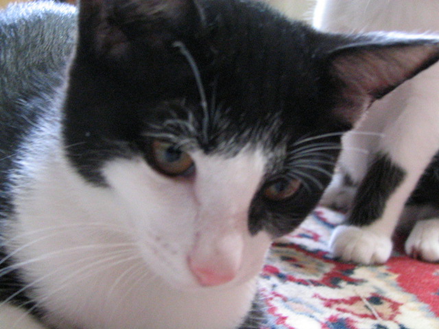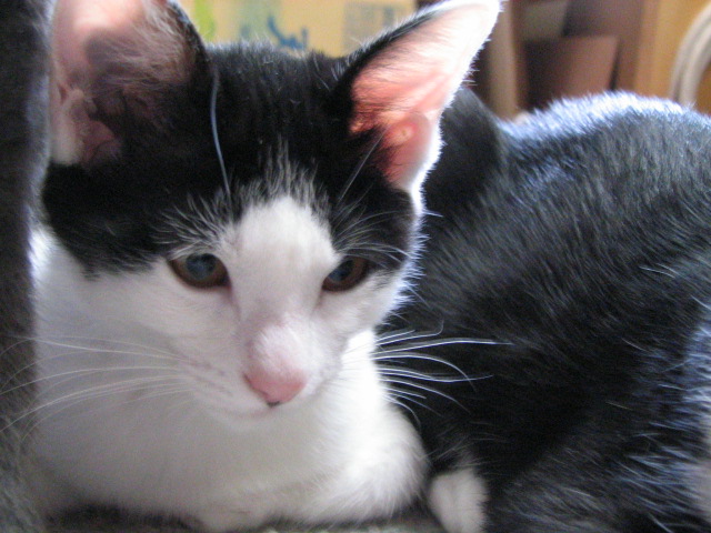この子も元気が有り余ってる方ですねえ。(^^;; よくマメクロと取っ組み合いのケンカ(じゃれあい?)をしています。身体も大きい方ですし。