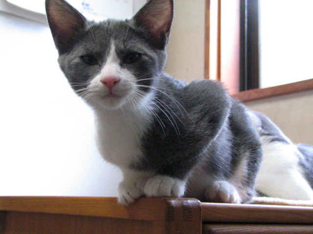 なんというか・・・ 名前の付け方は、かなりいい加減だった(仮名のつもりですし)のに、この子ほんとうにグレにタイプが似ています。写真も何となく不機嫌そうでしょ。(^^;;