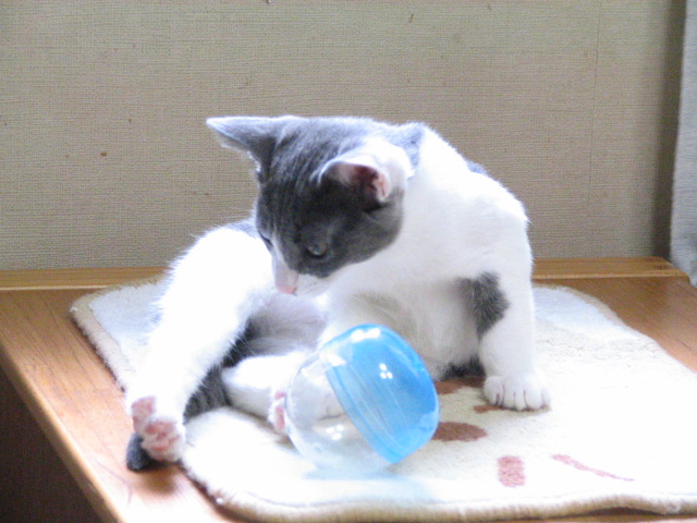 あいかわらずのマイペース。(^^;; でも社会性が無いわけじゃなく、ちゃんとほかの子たちとも遊べています。でも気がつくと、なぜか一人離れてのんびり寝てることも多い・・・ チビマルとは別の意味で「猫らしい」性格なんですかね。
