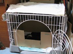 頼んでおいたケージが届いたのです。・・・これで、夜中にダンボールの上面がつぶされる心配をせずに眠れる・・・ と、思ったんですが。