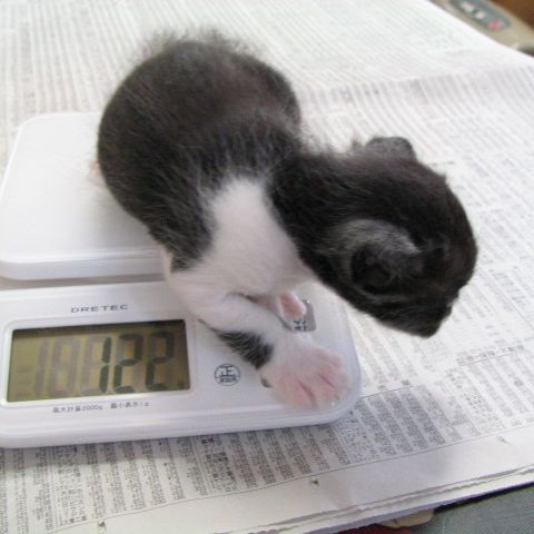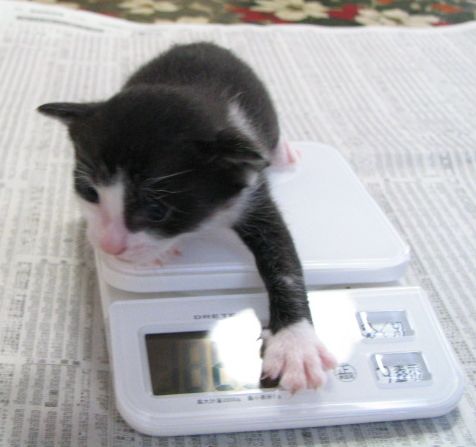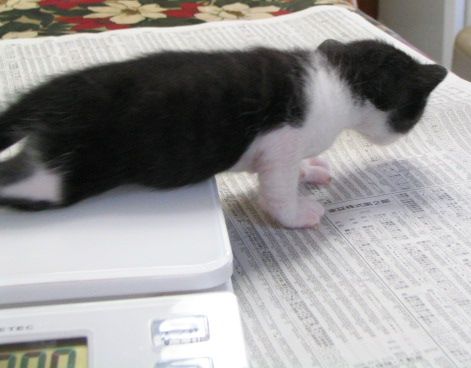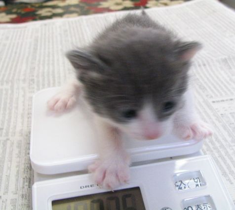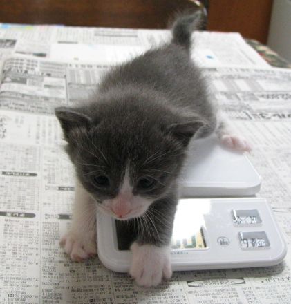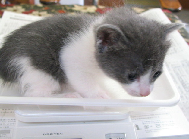 (ま、ダメと言われても抱き上げちゃうし、体重も量っちゃうと思いますけれど。マルとぎんは赤ちゃん時代がノラなので、いまだに「だっこ」どころか、なでさせてもくれませんもん。この子たちは赤ちゃんのときから人間に慣らして、人間に甘えられる猫たちに育てないと。)