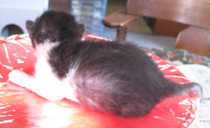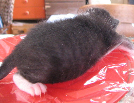 あっち向いちゃってますが(^^;; グレと同じような、顔の下半分と手足だけが白い子です。